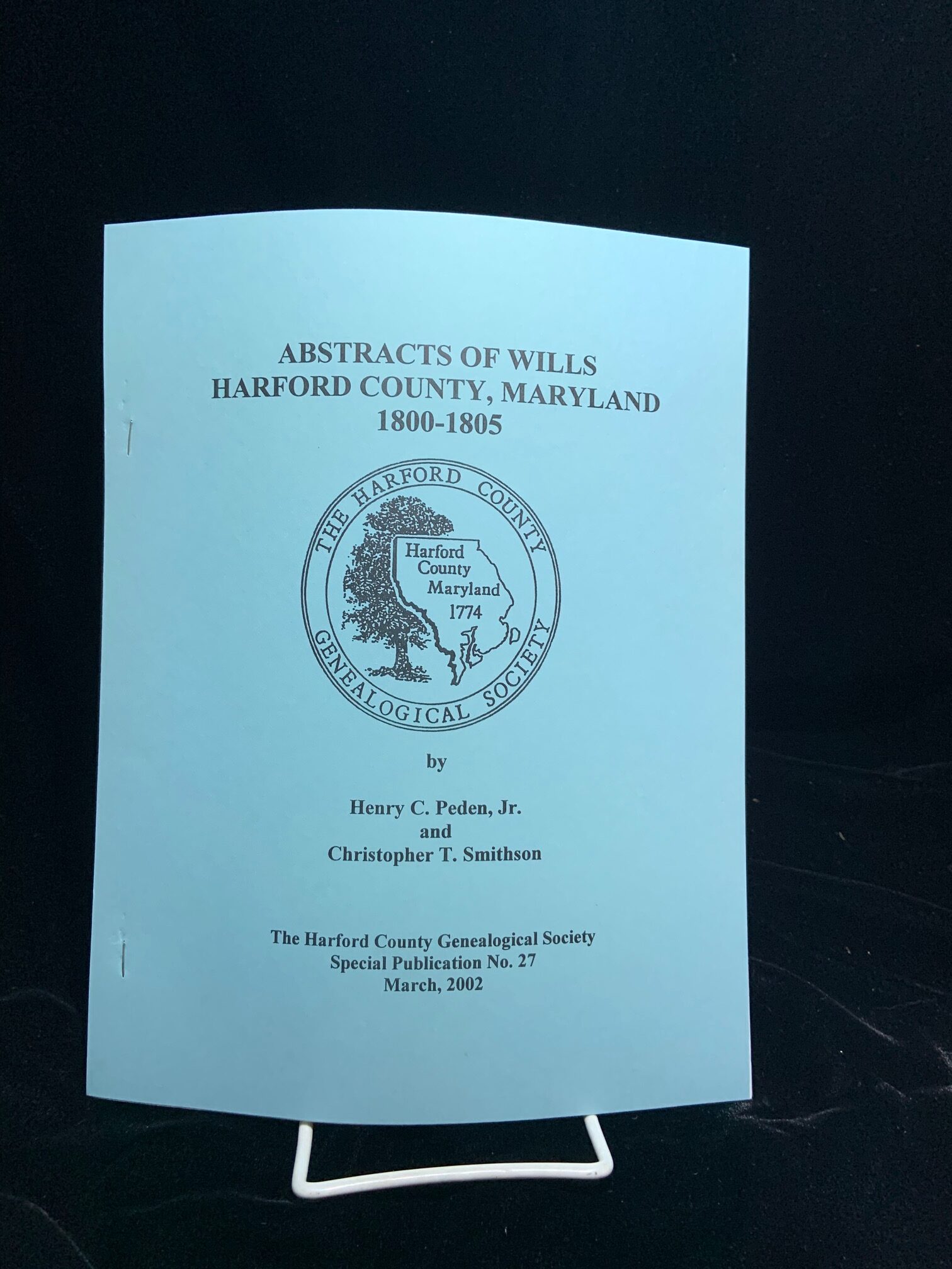 Abstracts of Wills, Harford County, Maryland. 1800-1805. By Henry C. Peden Jr. and Christopher T. Smithson. Special Publication 27 of The Harford County Genealogical Society.