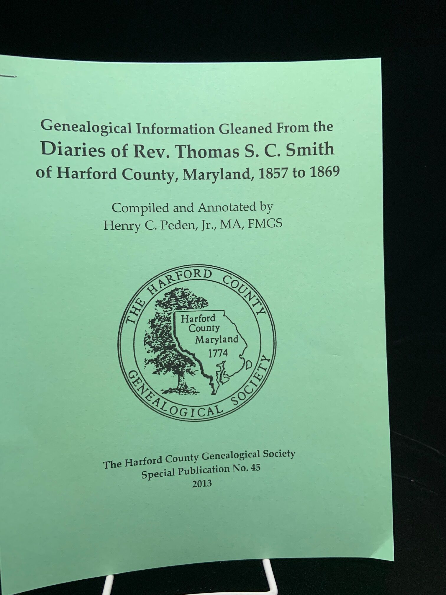Genealogical Information Gleaned from the Diaries of Rev. Thomas S. C. Smith of Harford County, Maryland. 1857-1869. Compiled and Annotated by Henry C. Peden, Jr. MA, FMGS. By The Harford County Genealogical Society, Special Publication Number 45.