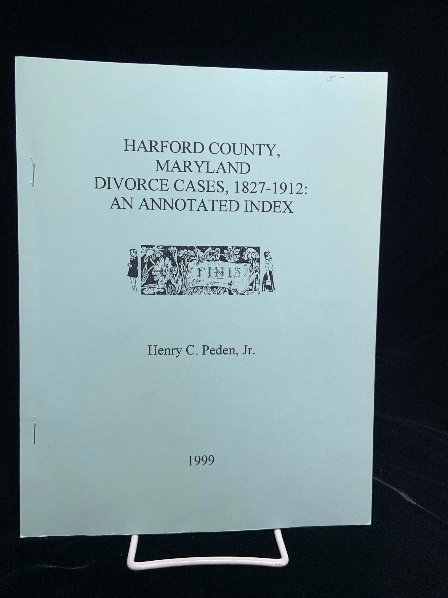 Harford County Maryland Divorce Cases, 1827-1912: An Annotated Index.  By Henry C. Peden Jr.