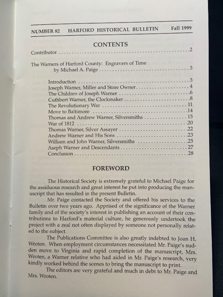 Issue #82 – The Warners of Harford County: Engravers of Time