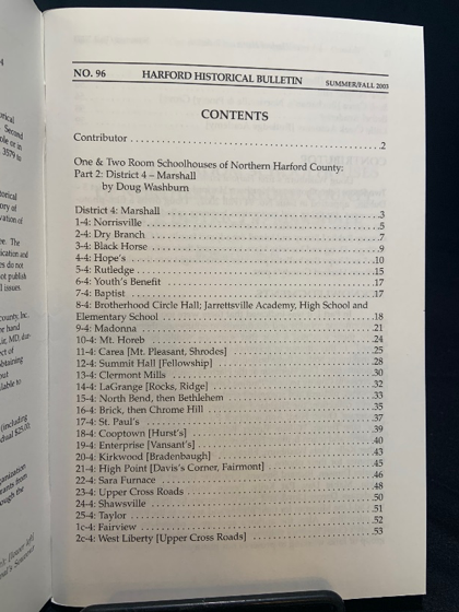 Issue #96 – One and two Room Schoolhouses of Northern Harford County: Part 2. District 4, Marshall.